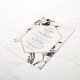 A sophisticated and exquisite floral wedding invitation with a background of beautiful and delicate black and white flowers, accented by a real foil geometrical frame presenting your wedding ceremony details in dark grey serif fonts for a romantic yet modern style.