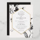 Invitación Con Relieve Metalizado Black & White floral geometrical gold frame