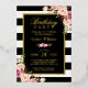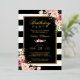 Invitación Con Relieve Metalizado Black White Stripes Rubor Floral Birday Party