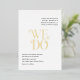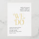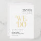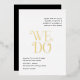 Invitación nupcial moderna con un diseño mínimo con "We Do" en tipografía audaz en el medio. "Lo hacemos" está en Relieve metalizado real y todo el texto restante está en blanco y negro. Todo el texto puede cambiarse a Relieve metalizado en la herramienta de edición de diseño. Esta sencilla pero elegante invitación a la boda es ideal para un boda formal o informal.