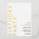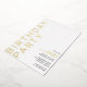Invitaciones modernas y minimalistas de cumpleaños con un diseño neutral de género. Se imprimirá en Relieve metalizado metálico real el texto grande del "PARTIDO DE CUMPLEAÑOS" y el texto de cumpleaños de "[nombre]"; mientras que los detalles del evento se imprimirán en negro mate, para facilitar su lectura. Relieve metalizado dorado en un amplio fondo blanco.