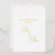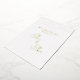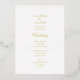 Una bella invitación a la boda blanca y sólida con un texto y un elemento de Relieve metalizado dorado. La parte posterior es un bonito texto de color dorado con todos los detalles del boda.