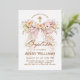 Invitación Con Relieve Metalizado Bloom Floral Bow Girl Baptism