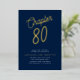 Invitación Con Relieve Metalizado Blue 80th Birthday Gold Script Chapter 80 Fiesta
