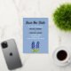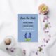 Moderno, elegante, con tonos azules florales, QR Code, foto, Relieve metalizado dorado, Boda Guardar la Fecha. Puedes personalizarlo con tus propios detalles.
