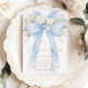 Blue Floral Eucalyptus Bow Boy Baptism Foil Invitation