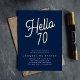 Haga que su lujosa fiesta de cumpleaños número 70 destaque con estas invitaciones diseñadas de forma única y personalizado. Estas invitaciones presentan un elegante Relieve metalizado de oro con un fondo azul clásico, perfecto para cualquier celebración de cumpleaños de moda. Disfrute de servicios sin precedentes y una verdadera situación de privilegioubicación privilegiada en el Golden Script Hello Relieve metalizado.