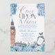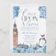 Invitación Con Relieve Metalizado Blue Once Upon a Time Princess Baby Shower