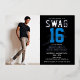Invitación Con Relieve Metalizado Blue Swag 16 Cumpleaños