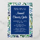 Blue Watercolor Floral Charity Event Relieve metalizado Invitación Fiesta Gala presenta un elegante patrón floral de color azul, verde y blanco acentuado con un Relieve metalizado real con los detalles del evento en el centro. Perfecto para eventos de caridad, eventos corporativos, Navidades festivos y celebraciones de fiestas, fiestas de cócteles, celebraciones de aniversario, fiestas de cumpleaños, duchas de novias y mucho más. Personalice editando el texto en los cuadros de texto proporcionados. Diseñado por ©2024 Evco Studio www.zazzle.com/store/evcostudio