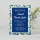 Invitación Con Relieve Metalizado Blue Watercolor Floral Charity Event Gala Fiesta