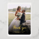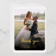 Una manera grandiosa y cuidadosa de agradecer a tus amigos, familia, invitados y compañeros de trabajo que se aparecieron para celebrar tu boda contigo. Esta moderna foto gracias tarjeta de Relieve metalizado dorado con la letra "gracias" con la mano del guión y su foto boda favorita es un perfecto keepsake Fotos tanto en la parte delantera como en la inversa de esta tarjeta que puede reemplazar con la tuya.