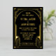 Invitación Con Relieve Metalizado Boda Art Déco Nouveau Dorado & Boda Negra