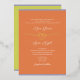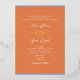 Sumérjase a su gran día con una invitación a una boda naranja, acentuada por un corazón de cuerda dorada radiante, un símbolo de amor y conexión eternos. El diseño minimalista destaca los nombres y detalles de la pareja en un diseño limpio y elegante. Un sutil guarnecido violeta añade un toque de suavidad al llamativo fondo naranja, perfecto para bodas de otoño o celebraciones contemporáneas brillantes. Personalice con su información boda una invitación elegante y única que destaca.