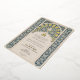 Admire la exquisita belleza del arte islámico con esta lujosa invitación a la boda, perfecta para parejas que aprecian los intrincados diseños y la riqueza cultural de la caligrafía y los patrones islámicos. El frente de la invitación presenta un cautivador diseño de encaje azul marino y crema, enmarcado elegantemente en un arco central inspirado en la arquitectura islámica. Este arco encierra un delicado acento de Relieve metalizado dorado que añade un toque de opulencia al diseño. La parte posterior complementa la parte delantera con una continuación del patrón de encaje ornamentado, ofreciendo una experiencia visual sin fisuras. El uso de la crema y el azul marino, con detalles de Relieve metalizado dorado, crea una estética sofisticada y culturalmente significativa que impresiona a los clientes. El arte islámico es conocido por su énfasis en el aniconismo y presenta patrones geométricos intrincados, caligrafía y motivos vegetales, conocidos como arabescos. Este tipo de diseño a menudo incluye características como muqarnas y intrincados laberintos, que se interpretan en este diseño de invitación. El uso del Relieve metalizado de oro recuerda a manuscritos y obras de arte islámicas tradicionales, añadiendo un lujoso elemento que honra la historia y el significado cultural del arte.