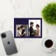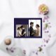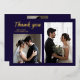 Moderno Relieve metalizado boda azul marino 3 foto tarjeta de agradecimiento. Boda Relieve metalizado, tarjeta de agradecimiento. Relieve metalizado dorado, tarjeta de agradecimiento. Este boda de Relieve metalizado dorado de agradecimiento cuenta con un guión de caligrafía con Personalize con sus nombres y fecha de boda.
