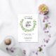 Estas invitaciones florales a la boda con corona de eucalipto de color agua y textos en negro y dorado sobre fondo blanco son elegantes y únicos. El texto de la plantilla facilita la personalización. El follaje botánico decora la parte delantera y trasera de las invitaciones a la boda.