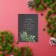 Escoja estas invitaciones botánicas de bodas ricamente coloreadas para elegantes bodas de invierno, nupcias de otoño o otoño, o bodas nocturnos en verano. El diseño moderno de la moda combina elementos naturales y geométricos para un aspecto fresco y llamativo. Los detalles de tu boda aparecen con letras blancas, enmarcadas por un borde de Relieve metalizado dorado acentuado por follaje verde, hojas exuberantes y pequeñas flores blancas en la esquina inferior izquierda, en un fondo de tierra rica y tonificado. Artículos coincidentes disponibles en nuestra colección de Greenhouse.