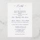 El diseño de la invitación a la boda católica monogramada presenta las iniciales de la novia y el novio en un elegante tipo de letra plateada que se muestra en la parte superior central. A continuación se muestra una pequeña cruz de plata. El texto es totalmente personalizable. En el reverso hay un delicado ramo de novias en la esquina inferior derecha. Diseñada para acompañar la "Suite Boda Católica Monogramada".