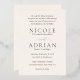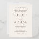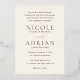 Elegante invitación de boda con fuentes serif tradicionales en un diseño sencillo.