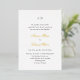 Invitación de boda clásica con su monograma en la parte superior junto con sus nombres en un guión elegante y los detalles restantes en una fuente serif tradicional.