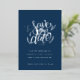 Tarjeta de boda con guion de caligrafía plateada naval moderna