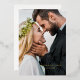 Elegante tarjeta de agradecimiento de boda con texto manuscrito con letras a mano que dice "gracias" en oro encima de tu foto. Puede añadir una segunda foto en la parte posterior.