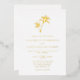 Impresione a sus huéspedes con la elegancia simple de este REAL RELIEVE METALIZADO DORADO mínimo invitación a bodas en la playa tropical, con palmeras en la parte superior.