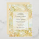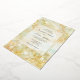 Brillante, cristalina La ráfaga de champán es una mezcla de amarillo, melocotón y verde azulado pálido con ramas doradas que marcan con una elegante gema, un aspecto cristalino. Escanea y brilla de una manera única que se ve 3d. La parte posterior de la tarjeta tiene un color duradero de melocotón. Se proporcionan plantillas de texto. Es ideal para un verano, quizás por la noche, boda, con los colores tropicales. También un buen tema de bodas en la playa.
