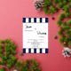 Personalizar esta clásica y actualizada invitación mostrada en papel de firma, con opciones de papel, por supuesto, en un clásico borde rayado negro y blanco arriba y abajo; acentos de Relieve metalizado plateado y texto de Relieve metalizado plateado sobre blanco. La elección de los colores del Relieve metalizado. Cambie la información a la suya en esta plantilla bien diseñada. Ideal para bodas, almuerzos, brunch, tés o recepciones o eventos tipo gala.