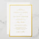 Sencilla, elegante y moderna, esta invitación formal a la boda incluye un elegante borde y un elegante guión caligráfico presionado en Relieve metalizado de oro real.