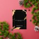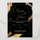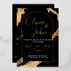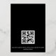 Se trata de una tarjeta de invitación a la boda ultramoderna con un código QR en la parte trasera para que no tengas que preocuparte por RSVP. Es de color negro y dorado.
