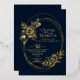 Ramos de rosas rodeados de formas de línea oval irregulares - tipo compensado hace que esta sea una invitación de compromiso ultra moderna y chic - disponible en hoja de oro, hoja de plata o hoja de oro rosa en cualquier fondo de color oscuro - elegimos azul marino para hacer que el diseño realmente resalte!