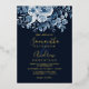 Invitación Con Relieve Metalizado Boda de escritura floral acuarela azul marino