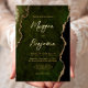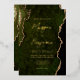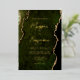 Esta elegante invitación a la boda presenta una imagen de fondo de un ágata verde oliva adornado con un falso purpurina de oro. El texto del personalizable combina la escritura a mano moderna de color dorado, el copperplate y las tipografías cursivas. El reverso presenta un diseño coordinado de agate de oro y verde oliva.