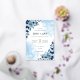 La Elegante Invitación a la Boda de Flores de Color Azul es una invitación hermosa y sofisticada, perfecta para una ceremonia boda. La invitación presenta un impresionante diseño acuático en tonos azules, que le confiere un aspecto atemporal y elegante. Las flores están pintadas con delicadeza y aportan un toque de belleza natural a la invitación. El texto está escrito en un estilo elegante y puede ser personalizado para incluir los nombres de la novia y el novio, la fecha y hora de la ceremonia y cualquier otro detalle importante. La invitación está impresa en papel de alta calidad, lo que garantiza que se verá perfecta en su día especial. Esta invitación es una elección maravillosa para cualquier pareja que esté buscando una clásica y elegante invitación a la boda.
