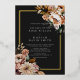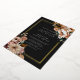 Flores negras y Relieves metalizados dorados elegantes Invitación al Relieve metalizado Boda