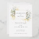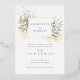 Elegante invitación a bodas botánicas de vegetación con follaje acuático y hojas de Relieve metalizado dorado.