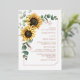 Crea una moderna tarjeta de invitación a la Boda Floral de Girasol con esta bonita plantilla con un bonito ramo rústico floral, marco geométrico de oro, con tipografía moderna. CONSEJO: En la colección que aparece a continuación se pueden encontrar tarjetas de suite boda como RSVP, programas de boda, carteles, tapiz, etiquetas de regalo, carteles y otros agujeros y artículos de boda.