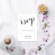 Moderno Script White and Gold Wedding Invitation Suite : Postcard RSVP con título en Relieve metalizado oro real estilo moderno tipo de letra con detalles en Relieve metalizado oro real sans serif moderno tipo de letra sobre fondo blanco.