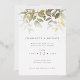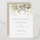 Elegante invitación a bodas botánicas de vegetación con follaje acuático y hojas de Relieve metalizado dorado.