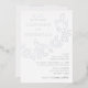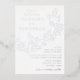 Invitaciones botánicas de boda con sus nombres y detalles bodas en letras de Relieve metalizado plateado divididas por una vid de hojas esbozadas con fondo blanco. Las elegantes invitaciones a la boda de Relieve metalizado plateado se coordinan con nuestra colección de bodas de las hojas en cascada.