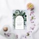 Invitaciones de boda de jardín botánico con vegetación moderna. Esta elegante invitación de boda con arco es una opción perfecta para una boda de primavera o verano en un jardín al aire libre. Cuenta con hojas botánicas pintadas con acuarela con marcos arqueados modernos y la inicial de la novia y el novio en hermoso foil dorado. Haga que estas invitaciones de boda de jardín sean una invitación elegante y única que dé una primera impresión a sus invitados.