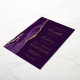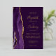 El borde izquierdo de esta elegante y moderna invitación a la boda incluye un borde de ágata color morado adornado con un falso purpurina de oro. El texto del personalizable combina la escritura a mano, el copperplate y los tipos de letra cursiva en Relieve metalizado oro real sobre un fondo violeta profundo. El reverso presenta un diseño de agate morado y dorado a juego.