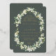 Invitación a una boda de invierno con nevadas pintadas a mano y tallos de eucalipto dispuestos en un bello marco botánico sobre un fondo verde gris. El texto y los puntos dispersos en la parte delantera de la tarjeta son pulsados por Relieve metalizado. Todo el texto es completamente editable. Vea esta colección en mi tienda para invitaciones con opciones de texto alternativas, colores diferentes y para elementos de coordinación.