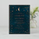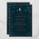 Los detalles de este modelo están marcados con Relieve metalizado. Anuncie su día especial con esta invitación de boda de la constelación celestial. Con un fondo verde forestal profundo con detalles brillantes de Relieve metalizado dorado de estrellas, luna y constelaciones, crea un ambiente mágico y elegante. En la parte trasera hay una opción de fotografía de personalizable que convierte la invitación en un plato de bienvenida para los clientes. Perfecto para bodas románticos, nocturnos o astronómicos.