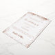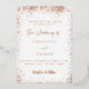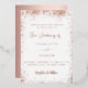 Un fondo blanco en la parte delantera. Decorado con puntos de Relieve metalizado de oro rosa. Personalice y agregue sus nombres y detalles del fiesta. Fondo de oro rosa.