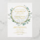 Invitación a la boda del herbario de eucalipto de bosque silvestre con marco geométrico de Relieve metalizado dorado y texto diseñado para ser rápida y fácilmente adaptado a las especificaciones de tu evento.