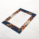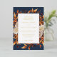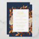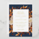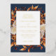 Invitación al Relieve metalizado de la boda de la Marina en otoño. Esta elegante invitación a la boda incluye un bello marco de naranja quemado con acuarela boho pintado a mano y hojas de terracota, dahlias crema y beige, y hermosos rosas de color rojizo sobre un fondo marino impreso en Relieve metalizado de oro real. Encontrar elementos coincidentes en la colección Navy Autumn Romance.