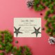 Diseño simple y moderno inspirado en lo tropical con dos estrellas de mar para una boda con tema de playa con plantilla de texto personalizable y color de fondo para que coincida con el tema deseado.